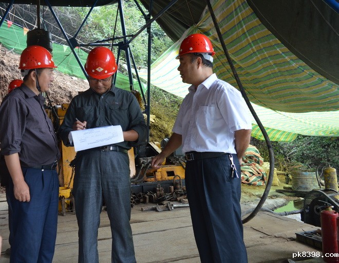 8月18日小秦岭金矿田成矿规律与深部成矿预测研究的深孔验证项目第二个钻孔正式开钻,钻孔设计孔深1880米。队党委书记兼副队长王战社、纪委书记王和平及省基金办、省地调中心等单位有关领导参加了开工仪式。