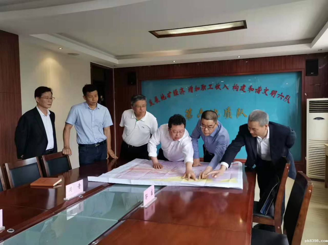 座谈会上,刘晓东首先对屈总一行莅临我队调研指导工作表示感谢。随后刘晓东向屈总一行详细介绍了我队历史沿革、职工队伍、四大产业板块经营发展、改革管理和“十四五”产业发展规划、目标等。屈永安详细询问了潼关矿区六大中深部探矿工程开展情况、工程布设、探采矿系统设计、安全管理投入和存在困难。刘晓东在汇报中指出,我队是一个具有深厚历史底蕴、雄厚技术力量和实体产业基础的综合地勘单位。我队长期扎根潼关小秦岭金矿田,在地质勘查、矿产开发和钻探工程施工等方面积累了丰富的技术资料和找矿成果。上世纪八十年代我队在国内地勘单位中首开“勘查开发一体化”经营,并步入了黄金产业发展的一个高峰。进入新世纪以后,尤其是2011年“小秦岭国家级整装勘查区”设立以来,我队抓住机遇,在潼关矿区布设了六大中深部探矿工程和一个选矿项目,目前利用这些探矿工程,我队已经在潼关中深部探矿过程中实现了较好的探矿突破,矿业也初步成为我队产业发展的龙头。此外,地质勘查大力实施“走出去”和“大地质”战略,经营发展逆势上扬;工程施工稳扎稳打,技术实力全省领先;民生地质虽起步较晚,但经营规模逐年增大,目前已步入发展正轨。