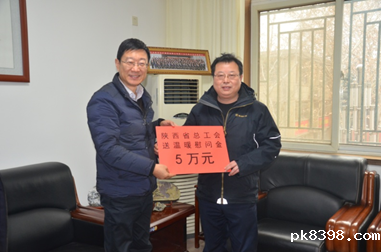 春节将至,暖意浓浓。各级领导心系困难职工。1月24日下午,陕西省总工会党组成员、副主席张永乐一行5人,深入我公司开展送温暖活动。集团公司党委委员、副总经理、工会主席白林科,工会常务副主席张汉军等陪同慰问。张永乐详细了解了公司生产经营情况与发展中面临的困难与问题,以及“春节”前我公司帮扶服务工作的开展情况。张永乐副主席充分肯定了我公司的各项工作,代表省总向公司广大职工致以新春的问候!努力把以习近平同志为核心的党中央对广大职工群众的关心关怀送到职工群众的心坎上。座谈会后,张永乐一行先后到因病致困职工王玉霞和西安市劳动模范董红毅家中进行了走访,仔细了解了他们的生活情况,并送上慰问金和慰问品。