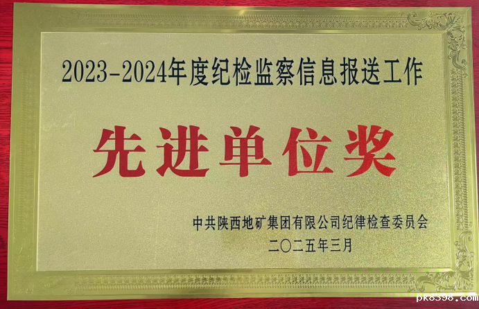 3月25日,在陕西地矿集团纪检监察信息报送年度评比中,我公司纪委凭借优异表现,获陕西地矿集团2023-2024年度纪委纪检监察信息报送工作“先进单位奖”。